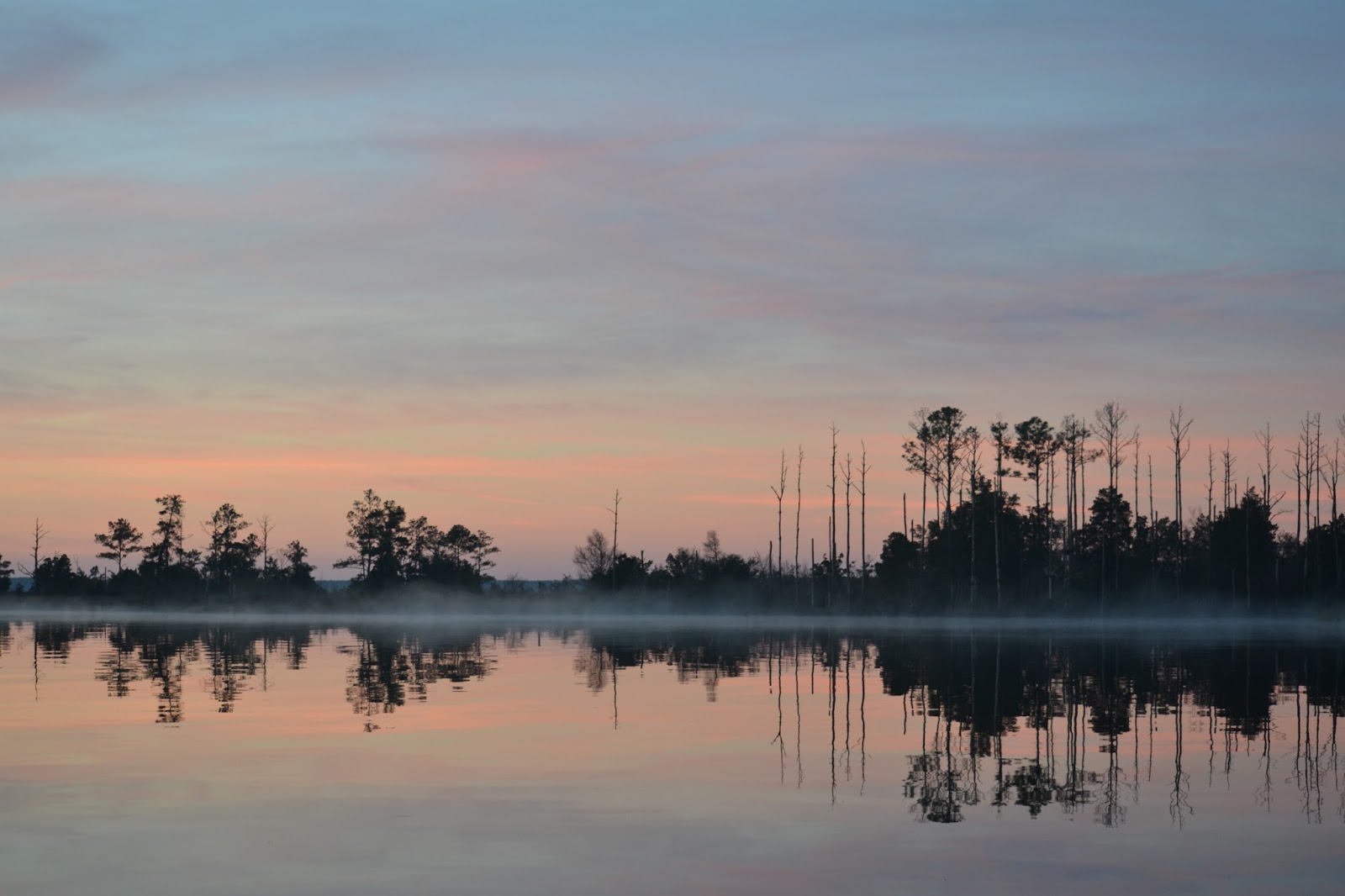 The rivers and sounds are wide and shallow and all the guide books caution timing your passages according to the wind. Tuesday dawned quiet and still, and we set off as the sun was rising to have a fairly quiet ride across Albemarle Sound and down the Alligator River to a pretty little anchorage off Tuckahoe Point.